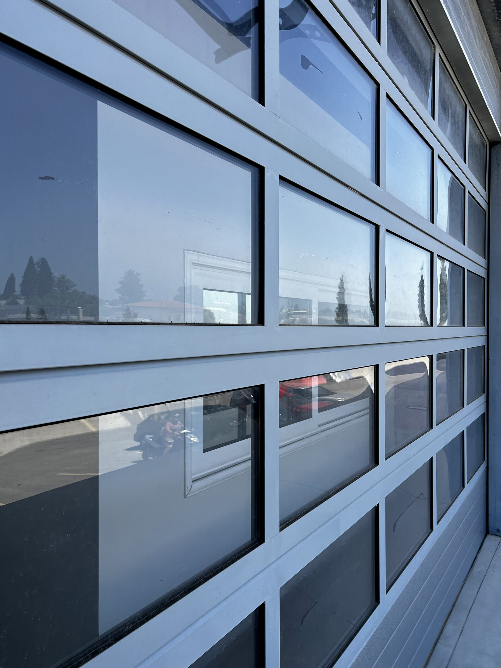 Τζαμωτά πλαίσια αλουμινίου κατασκευασμένα από πολυκαρβουνικό υλικό διπλής υάλωσης. Στην περίπτωση των τζαμωτών τα πάνελ πολυορεθάνης αντικαθίστανται από προφίλ αλουμινίου τα οποία φέρουν PLEXI GLASS σε 5mm πάχος. Οι διαστάσεις των τζαμιών ποικίλουν ως προς το πλάτος και το ύψος τους και διαμορφώνονται πάντα κατά περίπτωση σύμφωνα με τις διαστάσεις της κάθε πόρτας.